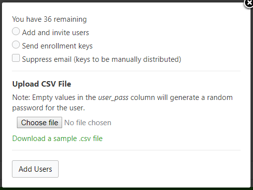 - Add and invite user adds every student to your group and triggers an email to them with their password.